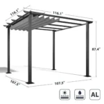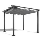 Оваа пергола има прилагодлив покрив, кој може да се поместува според вашите потреби. Без разлика дали сакате целосна сенка или делумно осветлување, со оваа тенда ќе го постигнете посакуваниот ефект. Дизајнот е практичен и лесен за користење, овозможувајќи ви брзо и едноставно да ја прилагодите сенката.