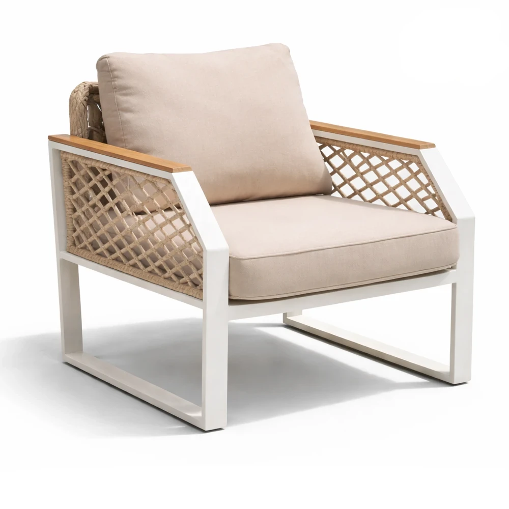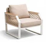Сетот вклучува фотелја, двосед и маса за секојдневна употреба на отворено.
