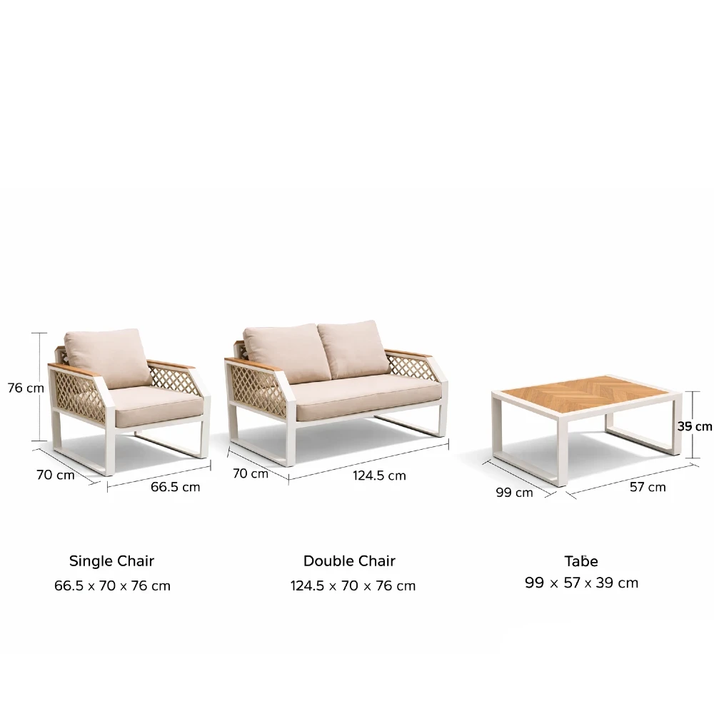 Сетот е наменет за секојдневна употреба на отворено, со доволен простор за седење и практична маса. Погоден е за одмор, кафе, разговор или користење во летни периоди на тераса и двор.