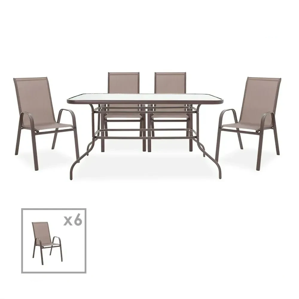 Со оваа трпезариска гарнитура, вашиот двор или балкон ќе добие елегантен и модерен изглед. Идеална е за семејни ручеци, дружење со пријатели или едноставно уживање на отворено!