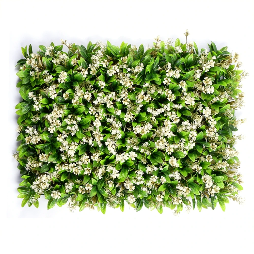 Декоративна Оградa со Цветови од вештачка трева претставува модерно и практично решение за разубавување на секој ентериер или екстериер. Со комбинација од густа зелена структура и нежни бели цветови, оваа декоративна панела создава природен и освежувачки амбиент, без потреба од одржување.