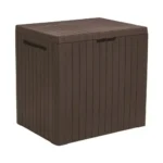 Кутија за складирање City Box во кафеава боја е практично и функционално решение за складирање на градинарски алат, перници, детски играчки и други надворешни предмети. Со својот компактен дизајн и капацитет од 113 литри, оваа градинарска кутија овозможува уреден и организиран простор на тераса, балкон, двор или во гаража.