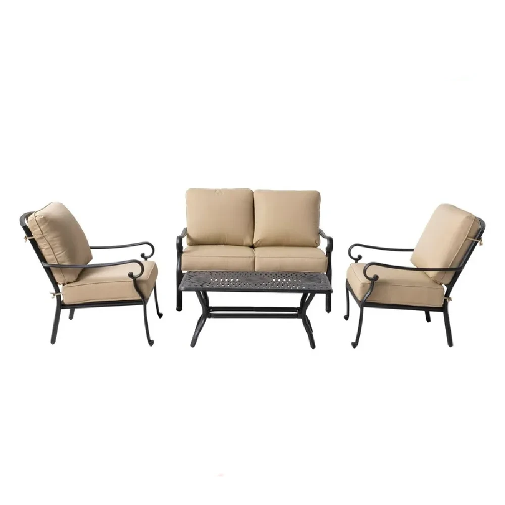 Изработена од високоотпорен челик обложен со прав, гарнитурата гарантира стабилност и отпорност на различни временски услови. Масата е опремена со стаклена плоча, која додава модерен изглед и овозможува лесно чистење. Оваа комбинација на материјали обезбедува долготрајна употреба и минимално одржување.