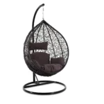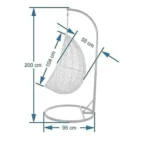 Дизајнот е со современа линија и е изработен со синтетички ратан обвиткан околу силна железна конструкција. Ова ја прави лулашката отпорна на сите временски услови и лесна за одржување.