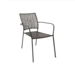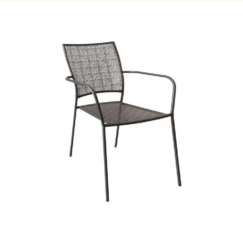 Изработен од електростатски обоен метал, столот е отпорен на надворешни влијанија и погоден за секојдневна употреба на отворено. Конструкцијата е цврста и сигурна, што го прави практичен избор за простори со поголема фреквенција на користење.
